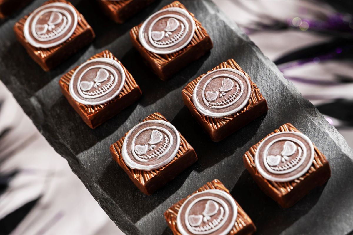 The Pumpkin Chai Ganache Square is a returning treat that is so spooky and cool with Jack Skellington’s face on it. You can get it at The Ganachery. It has Pumpkin and Chai Spices blended with White Chocolate and covered in 65% Dark Chocolate.