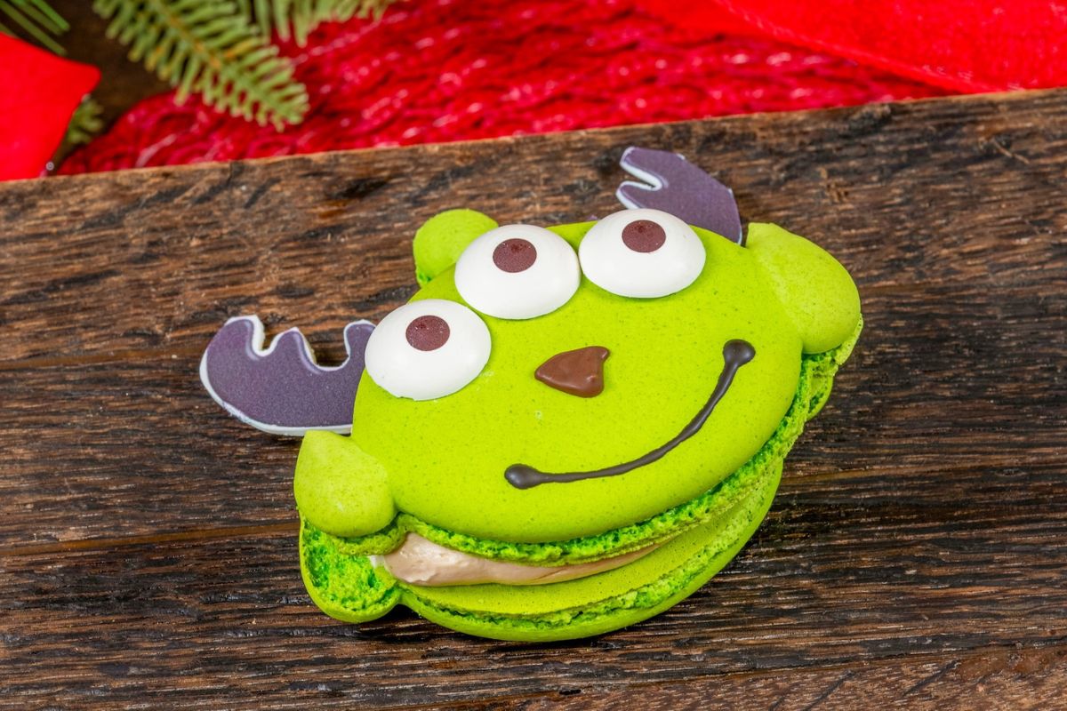 The Alien Reindeer Macarooooon is a returning holiday item at Alien Pizza Planet in Tomorrowland in Disneyland park. They usually have an Alien Macarooooon, but it changes to a cute reindeer for Christmas time. It is filled with salted caramel buttercream, chocolate ganache, and brownie pieces. You can mobile order at this restaurant. See the must-try holiday eats at Disney World this year here.