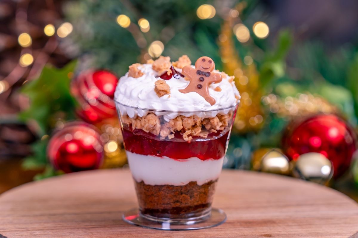 The Gingerbread-Cranberry Cheesecake Trifle is a new and very cutesy menu item at Jolly Holiday Bakery Cafe this year. It has layers of gingerbread cake, cheesecake, and cranberry compote topped with gingerbread crunch, white chocolate mousse, and a mini gingerbread man. Mobile order here if you can to save some time.