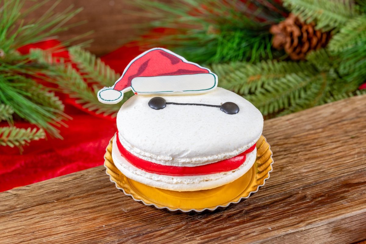 The Santa Baymax Macaron is a holiday take on the Baymax Macaron you can get in California Adventure park. This one has the addition of a little Santa hat and it is filled with peppermint buttercream, chocolate ganache, and dark chocolate crunchies. You can get it from Lucky Fortune Cookery in San Fransokyo Square from November 14th through January 7th. Mobile ordering is available here. This is a returning item.